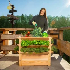 Pensé pour être installé dans les petits jardins ou les balcons, ce potager surélevé offre trois étages de 65 cm de côté et affiche une hauteur totale de 73 cm. Vous pourrez donc jardiner sans avoir à vous pencher, et ce même si vous ne disposez que peu d’espace. A noter également, la présence de lattes latérales inclinables conçues pour profiter d’une surface de culture légèrement plus grande.