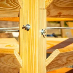 Solide et très résistante en cas d’intempéries, cette tour de culture verticale est conçue en mélèze. Quasi imputrescible, ce type de bois ne craint ni l’humidité, ni la moisissure et les insectes qui pourraient, à terme, le détériorer. Pour une protection complète et afin de préserver l’aspect du bois, il est toutefois recommandé d’appliquer une lasure ou un saturateur. Notez enfin que le bois utilisé pour concevoir ce potager surélevé est certifié FSC, ce qui signifie qu’il provient de forêts gérées de manière écoresponsable.