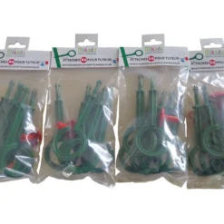 Le tuteur dispose de 8 trous de 7 mm de diamètre dans lesquels viennent s’insérer les attaches incluses. 4 lots de 6 attaches sont inclus et permettent de répartir le poids des plants sur tout le tuteur. Elles sont faciles à installer et à retirer.