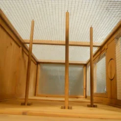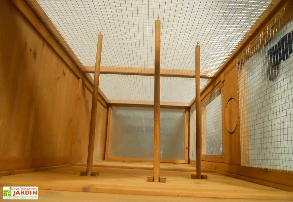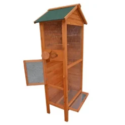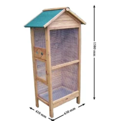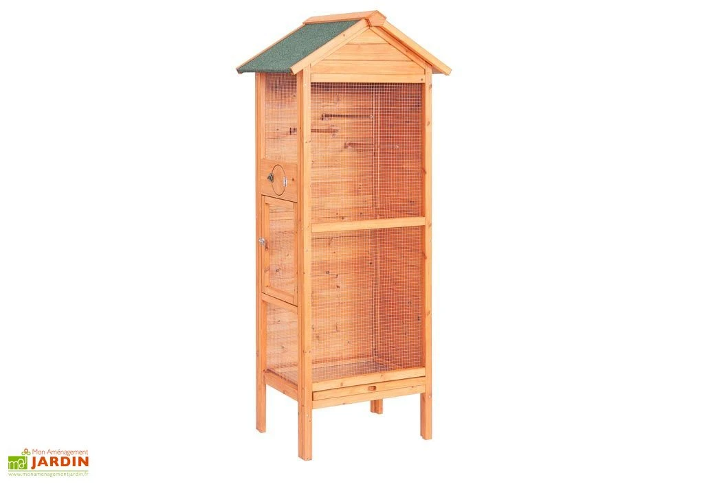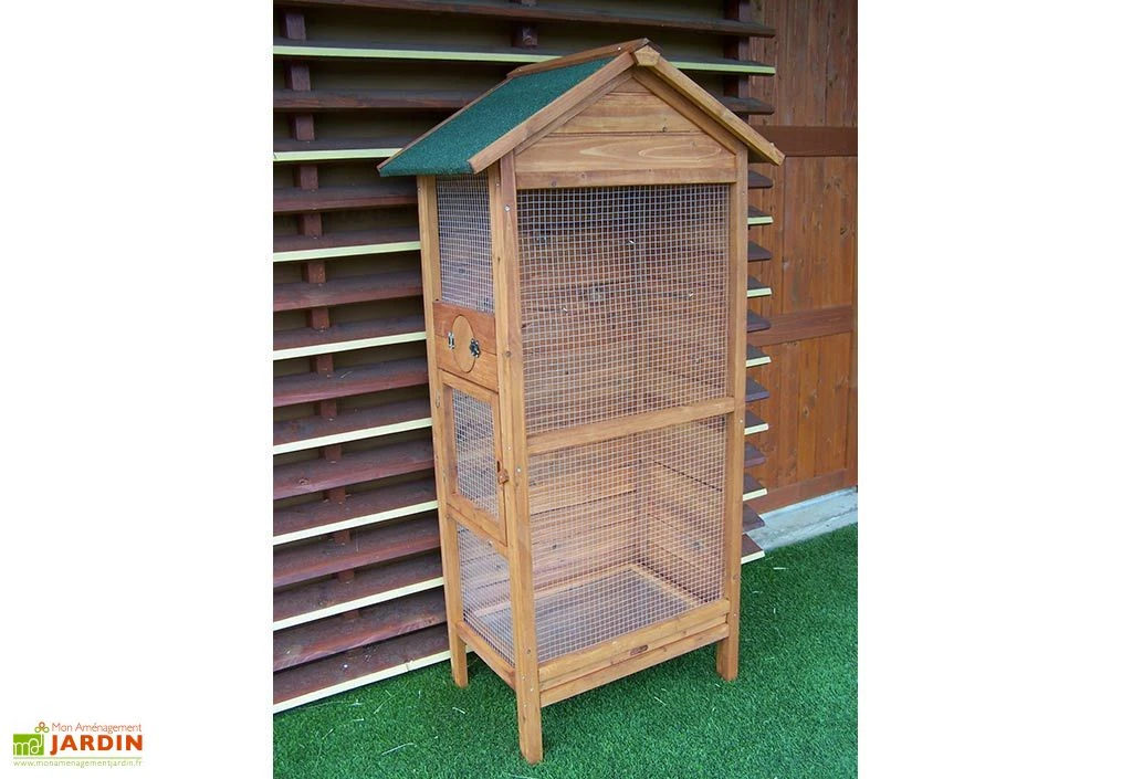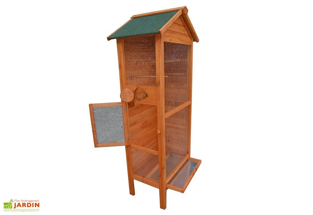 La volière Ă oiseaux rectangulaire de chez Habrita dispose d’une porte d’accès. Elle est bois FSC de 10 mm d’Ă©paisseur. Ses dimensions au sol sont : 63 x 41 cm (l,l) et hors tout : 77,5 x 54,5 x 158 cm (l,l,h). La cage Ă oiseaux est livrĂ©e avec un toit bitumĂ© bi-pente vert et deux murs pleins pour la protection des oiseaux. Le grillage galvanisĂ© possède un maillage de 1 x 1 cm. La cage est en bois clair et dispose d’un tiroir Ă dĂ©jection de 57 x 35 x 3 cm (l,l,h) et de 3 perchoirs. Elle est garantie 2 ans.
